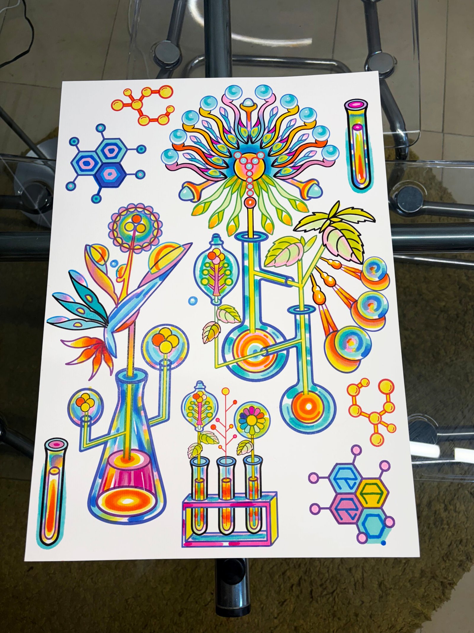 The original handmade painting. Materials:Acrylics and watercolor markers. size :A3 Plus Paper:250g